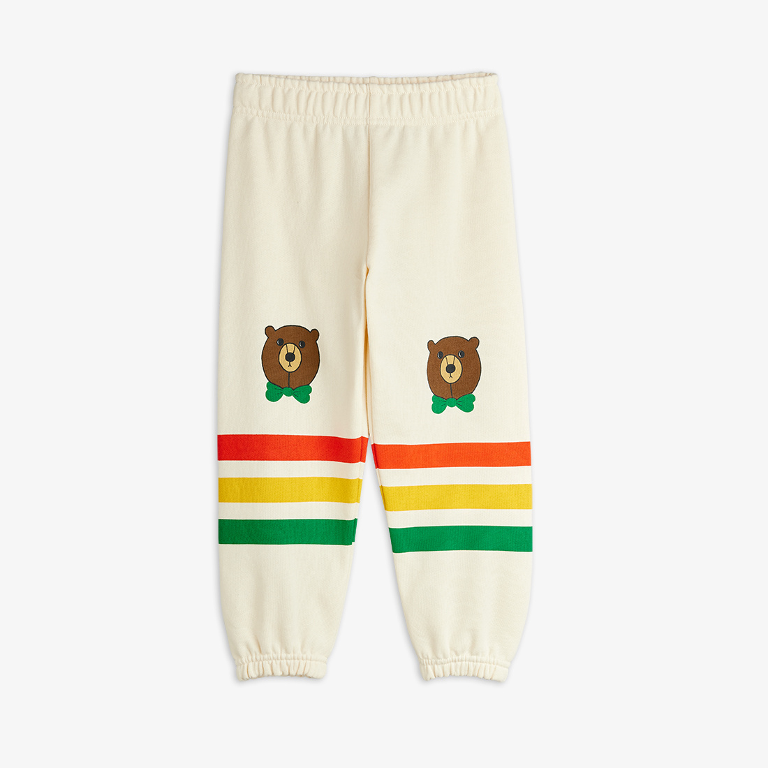 Sweatpants made from 100 % GOTS-certified organic cotton. Designed with colorful stripes and bear print on each knee.