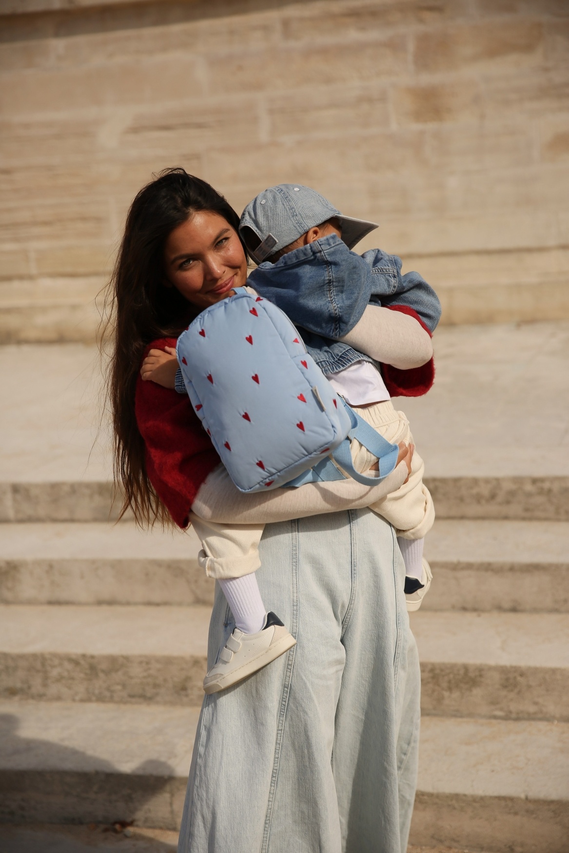 Made from our soft, padded fabric with playful red heart embroidery, it’s lightweight, durable and comfortable to wear. Designed for children aged 0 to 5, the compact size offers just enough space for toys, snacks, a small water bottle or tiny treasures