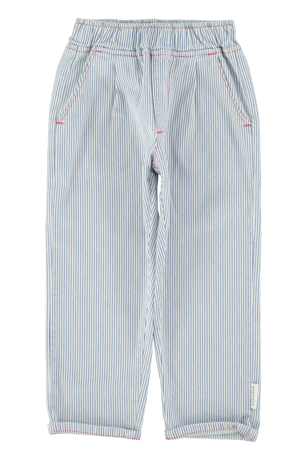 Trousers with elastic waist, lateral pockets. Detailed with red stitching.